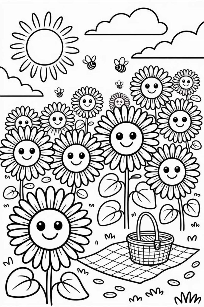 - Floral fantasies: Sunflowers in full bloom, petals begging for ombre effects. Check out fall flowers coloring pages for similar vibes.