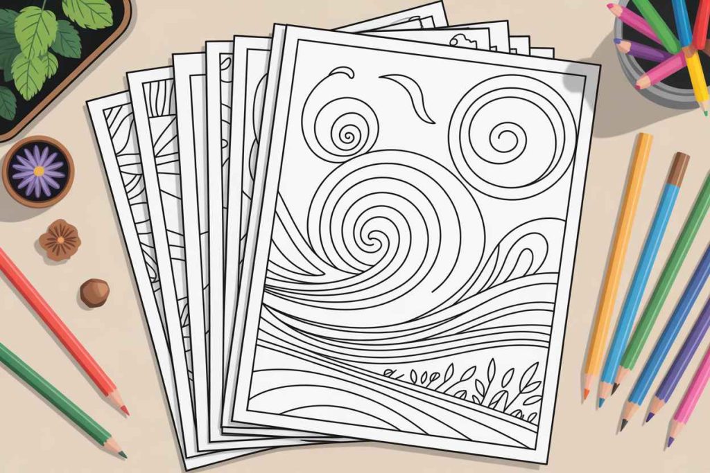 For adults who want to relax, abstract wind coloring pages use repeating swirls, waves, and geometric lines. Fans of this style should check out our mandala coloring pages for adults.