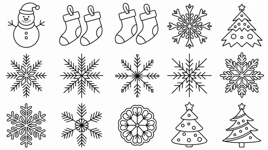 Kids go crazy for simple, bold-line designs—think Santa with his sleigh or a snowman family. If you’re looking for ready-to-print sets, check out: