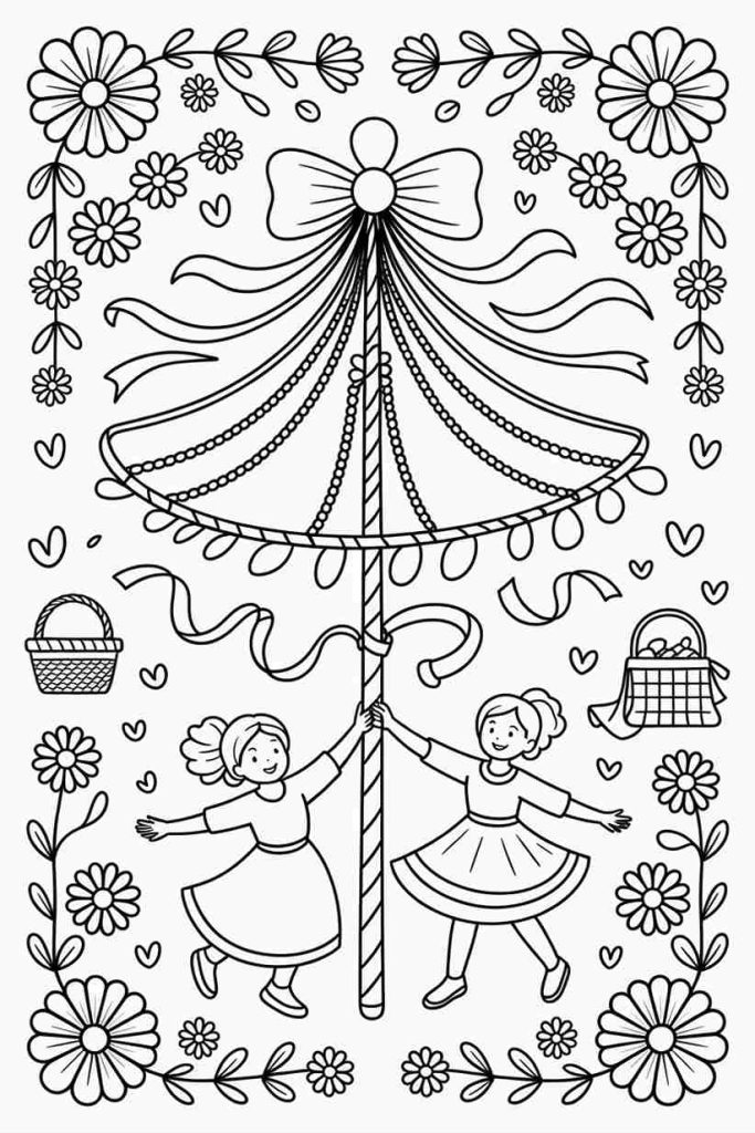 - Holiday Celebrations: Mother’s Day, Cinco de Mayo, May the 4th, and may day coloring pages printable with maypoles and ribbons.