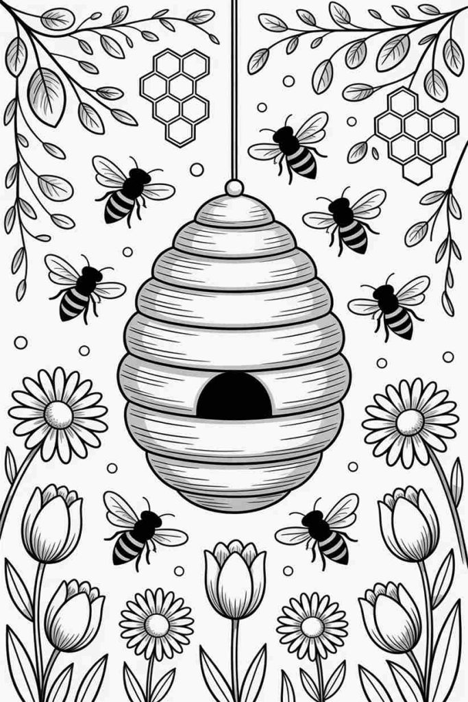 - Nature Elements: Bees and butterfly coloring pages, ideal for may coloring pages adult mandalas.